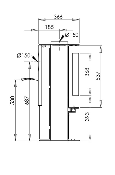 Rookafvoer boven/achter: Ø150 mm