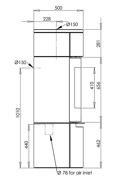 Afstand van hart rookafvoer tot achterzijde kachel: 22,8 cm