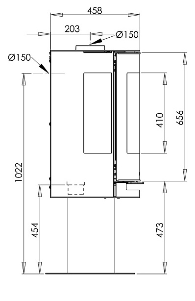 Hoogte rookafvoer boven vloer: 112,5 cm