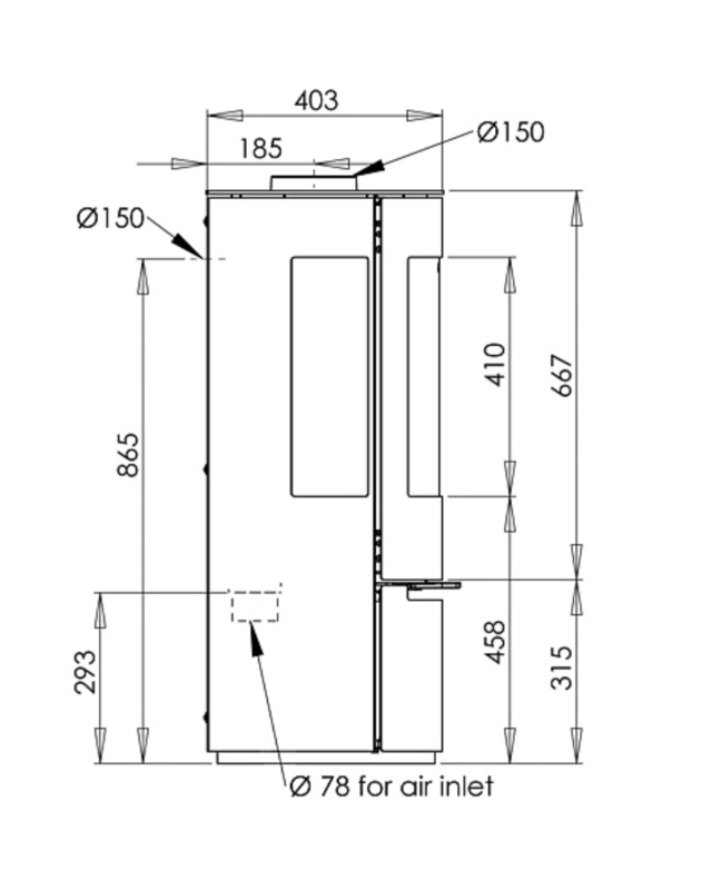 Afstand midden rookafvoer tot achterzijde kachel: 18,5 cm