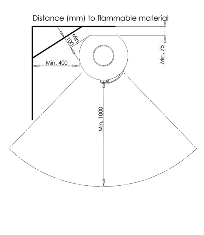 Afstand midden rookafvoer tot achterzijde kachel: 18,5 cm