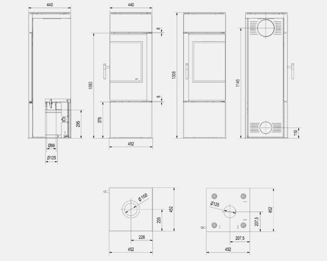 De Afmetingen vandeze houtkachel zijn: