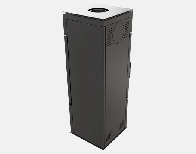 Het binnenwerk en de voorkant van het inzetstuk zijn bestand tegen hoge temperaturen dankzij het gebruikte materiaal en hoogwaardig staal. Verbranding van brandstofdeeltjes dankzij twee deflectors die de uitlaat verlengen.