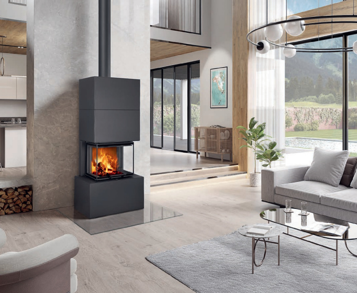 te ruimte heeft, is de kleinere broer van de design-haardkachel LUCERIA C, namelijk de de-