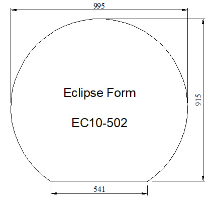 Ellipsvormig afgerond: B x D: 1100 x 950 x 0,6 cm